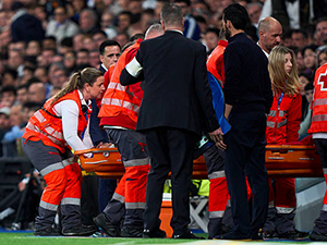 Trung vệ Raul Asencio đã phải rời sân trên cáng và nhập viện khẩn cấp sau pha va chạm với Camavinga trong trận Real Madrid thắng Benfica ở lượt về vòng play-off Champions League. |