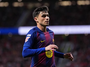 Ở trận thắng Atletico Madrid, tiền vệ Pedri của Barca đã tưởng mái đầu hói của người quay phim thành… trái bóng. |
