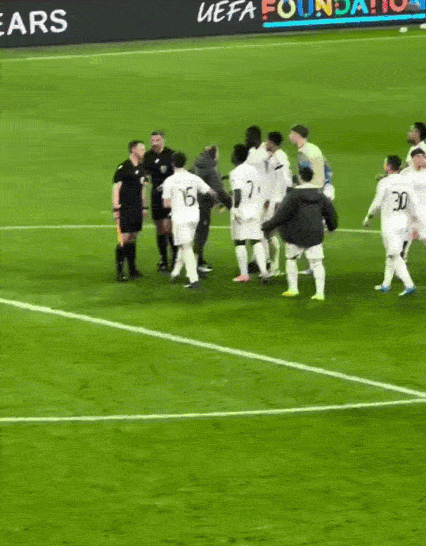 Trong sự tức giận, HLV Alvaro Arbeloa đã chỉ trích trọng tài vì quyết định rút thẻ vàng thứ 2 khiến tiền vệ Eduardo Camavinga bị đuổi khỏi sân. |