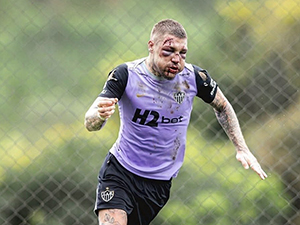 Trung vệ Lyanco đã trở lại tập luyện với khuôn mặt đầy thương tích sau khi bị đánh không thương tiếc trong trận đấu giữa Atletico Mineiro và Cruzeiro. |