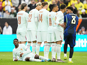 NHM Barcelona nói chung và HLV Hansi Flick đang nín thở chờ kết quả kiểm tra của Raphinha, cầu thủ phải rời sân vì bị đau trong trận Brazil thua Pháp với tỉ số 1-2 tại Mỹ. |